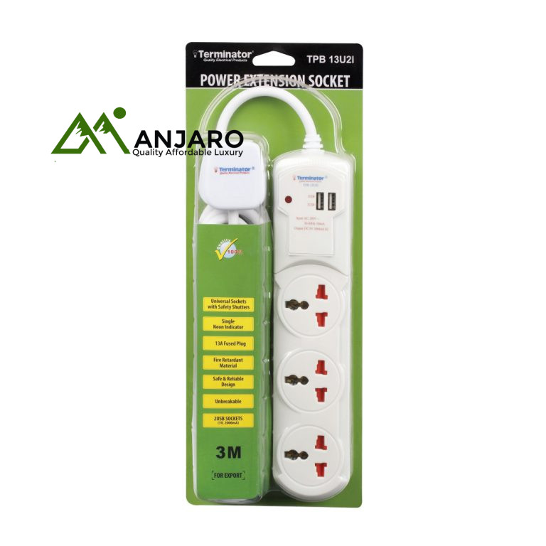 Power up with confidence using the Terminator 3 Way Universal Extension Socket with 2 USB charging ports. Designed for both home and office use, this high-quality extension allows you to safely power multiple devices at once, including smartphones, laptops and other appliances. With universal outlets, it supports a wide range of plug types, making it ideal for international users.