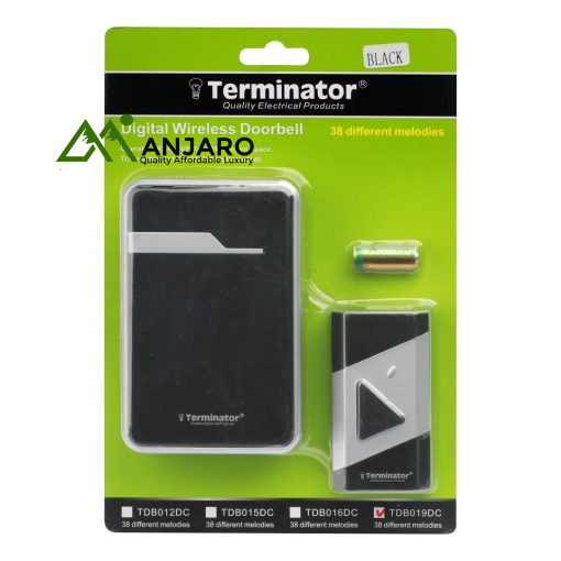 The Terminator TDB 019DC-B features 38 different melodies to choose from, giving you a personalized touch every time someone rings. It includes 1 receiver and 1 transmitter and operates on DC power—perfect for efficient, wireless use without complicated installation.