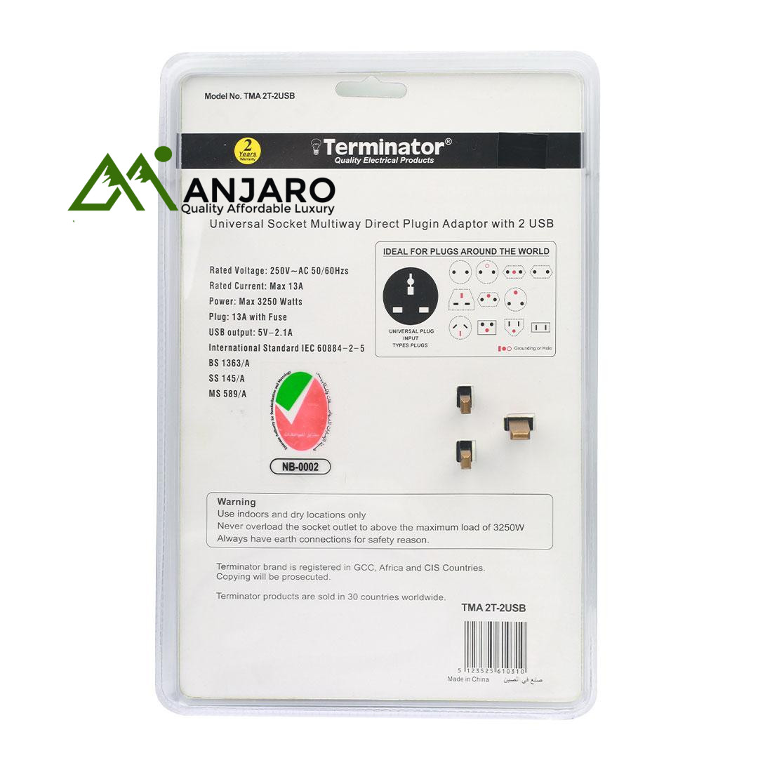 Upgrade your power access with the Terminator TMA 2T-2USB Multi Adaptor – a compact and reliable solution designed to power multiple devices at once. Featuring 2 universal T-sockets, 2 USB ports (2.1A) and individual power switches with LED indicators, this multi adaptor is ideal for both home and office use.