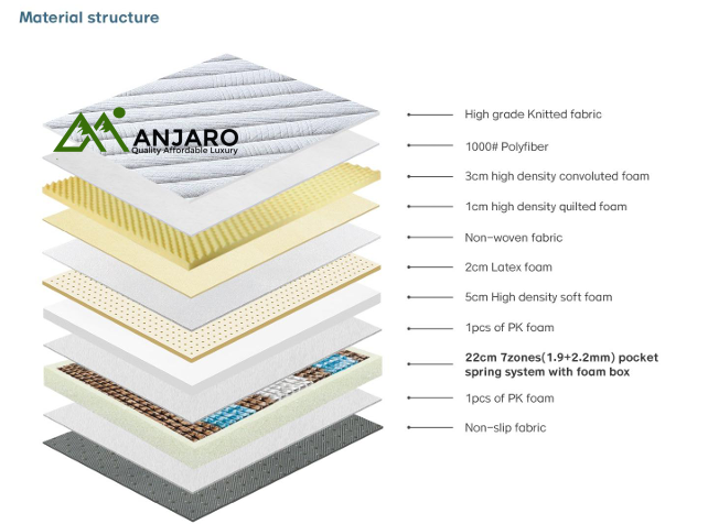 Elevate your rest with the TM2303C Premium Mattress, expertly designed with natural latex foam, multi-layered comfort, and advanced 7-zone spring support. At 26cm thick, this mattress combines 5cm high-density soft foam and 2cm latex foam with a sturdy foam-encased spring core to deliver responsive, breathable, and pressure-relieving sleep—perfect for people who want long-lasting comfort and ergonomic body support.