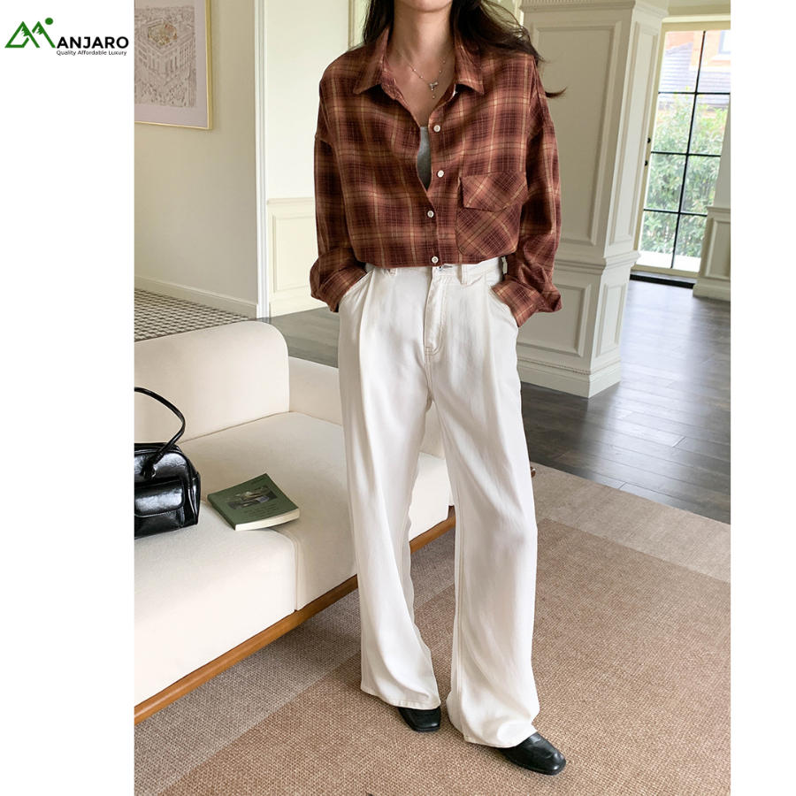 Elevate your casual and commuting wardrobe with the Topstitch High-Waisted Wide-Leg Jeans. Designed with a slightly floor-length cut, these jeans feature a high waist that flatters every figure while offering all-day comfort. Crafted from a premium cotton-polyester blend (90–95% cotton), these pants combine breathability and durability with a subtle stretch for ease of movement. The straight wide-leg silhouette ensures a relaxed yet stylish look, perfect for spring outings, office wear, or weekend adventures. Topstitch detailing adds a refined touch for a modern, minimalist aesthetic.