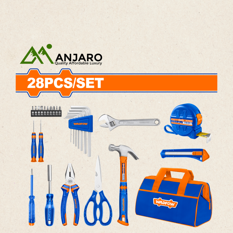 The Wadfow WHS1M28 28Pcs Hand Tools Set is a versatile toolkit designed to handle a wide variety of household repairs, installations, and DIY tasks. Packed with essential tools such as pliers, screwdrivers, wrenches, and a measuring tape, this set ensures you’re always ready for quick fixes and maintenance jobs. Neatly organized in a durable storage case, it combines convenience, portability, and durability, making it an excellent choice for homeowners, students, and professionals alike.