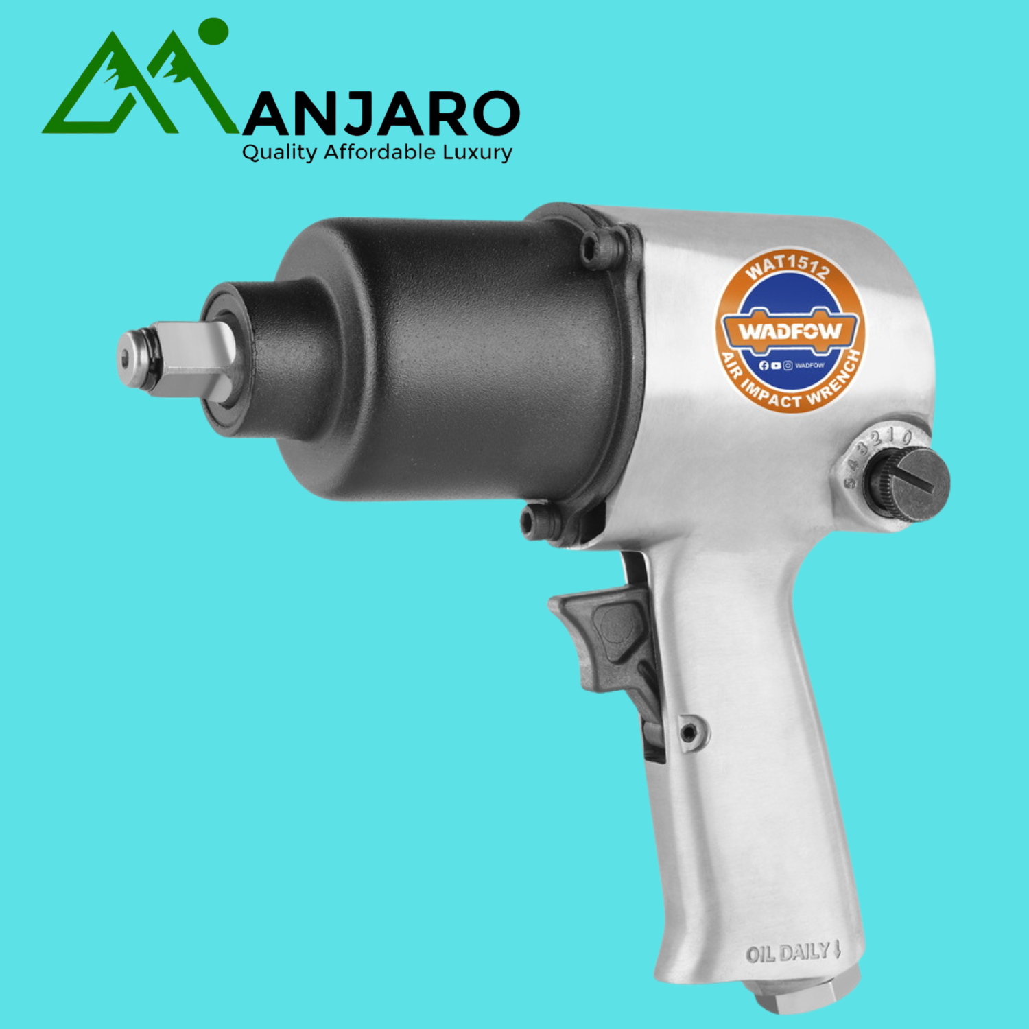 The WAT1512 Air Impact Wrench is a professional-grade pneumatic tool designed for high-torque fastening and loosening applications in automotive, industrial, and workshop environments. Featuring a 12.5mm (1/2") square drive and a maximum torque of 610Nm (450Ft-Lb), it provides powerful and precise performance for heavy-duty tasks. The wrench operates at a no-load speed of 7500/min and utilizes a twin hammer mechanism for smooth, efficient impact delivery. With an air consumption of 198L/min (7.0cfm) at 6.3bar (90psi) and a compact length of 186mm (7.3"), this tool ensures optimal handling and control. Packaged without a quick plug, the WAT1512 combines durability, ergonomic design, and professional-grade efficiency for demanding workshop applications.