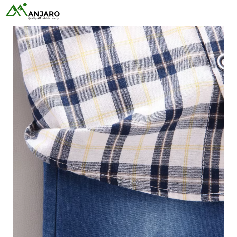Upgrade your toddler’s wardrobe with the Wholesale Two-Piece Casual Boys Clothing Set NWJ-25548, designed for comfort, style, and playful everyday wear. This set includes a soft plaid top paired with elastic denim shorts, crafted from a breathable polyester-cotton blend to keep your child comfortable during playtime, outings, or family gatherings.