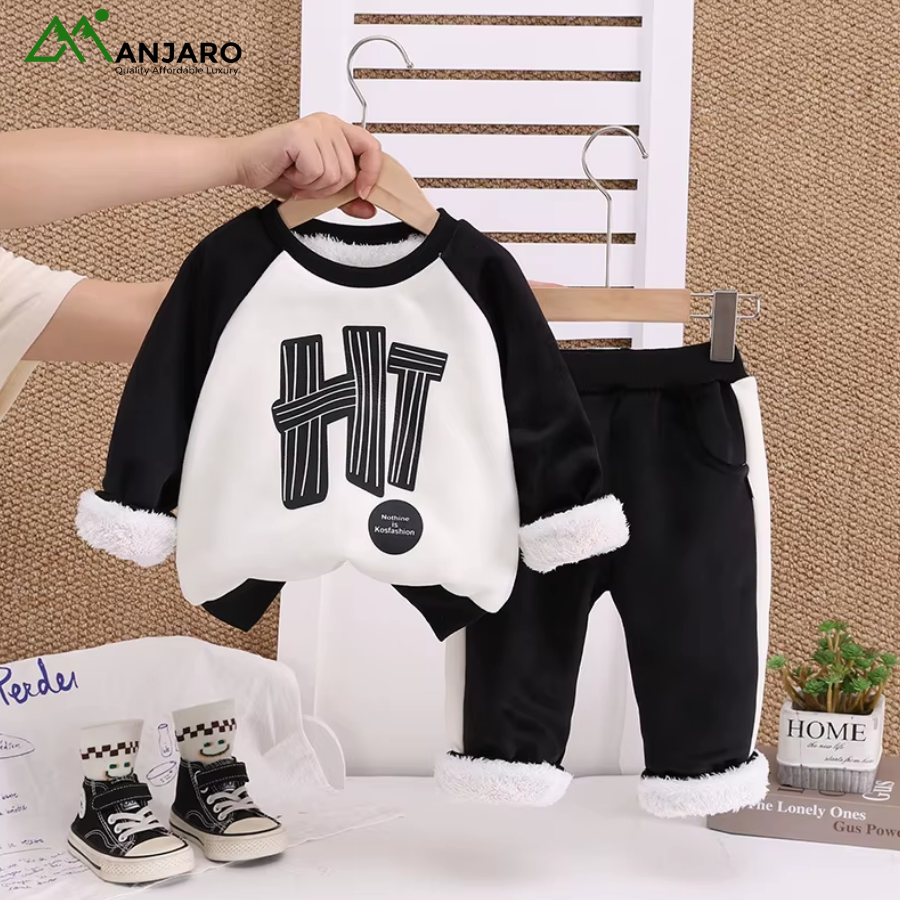 Made from high-quality polyester with a denim-effect fabric base, the set is soft on the skin while offering strong resistance to cold and outdoor activity. Its casual sport-inspired look makes it ideal for school, outings, and active days spent outdoors. Designed to give toddlers and young boys the freedom to move confidently, this outfit is both practical and stylish for winter.