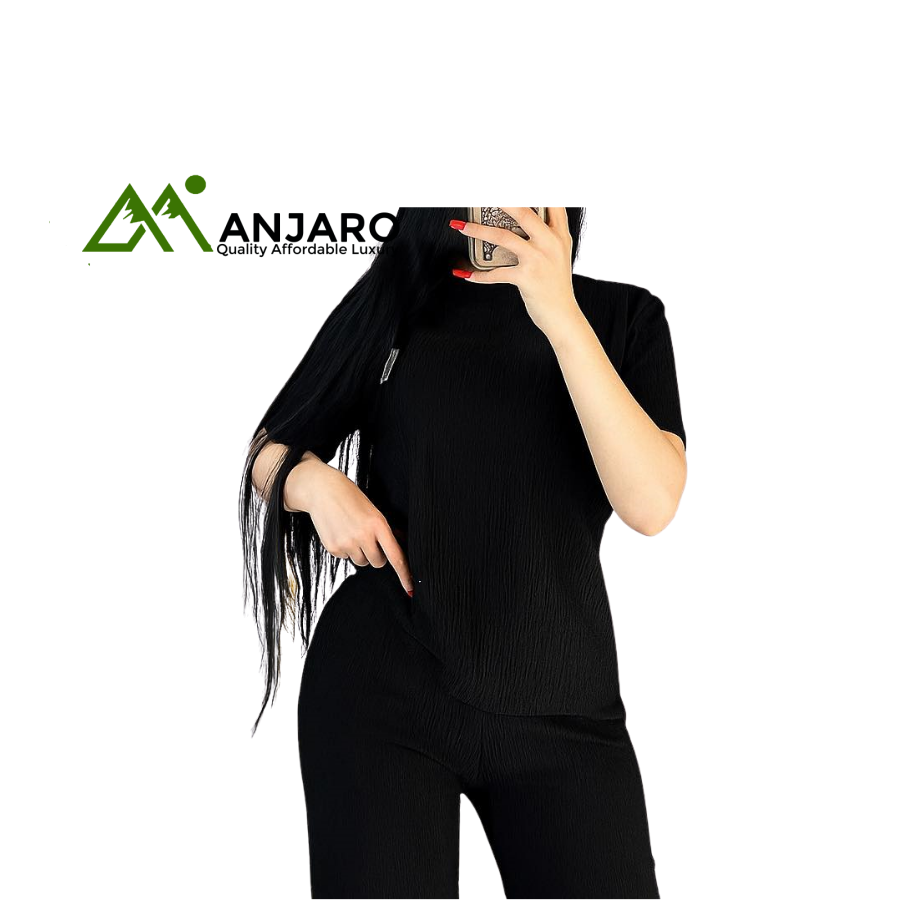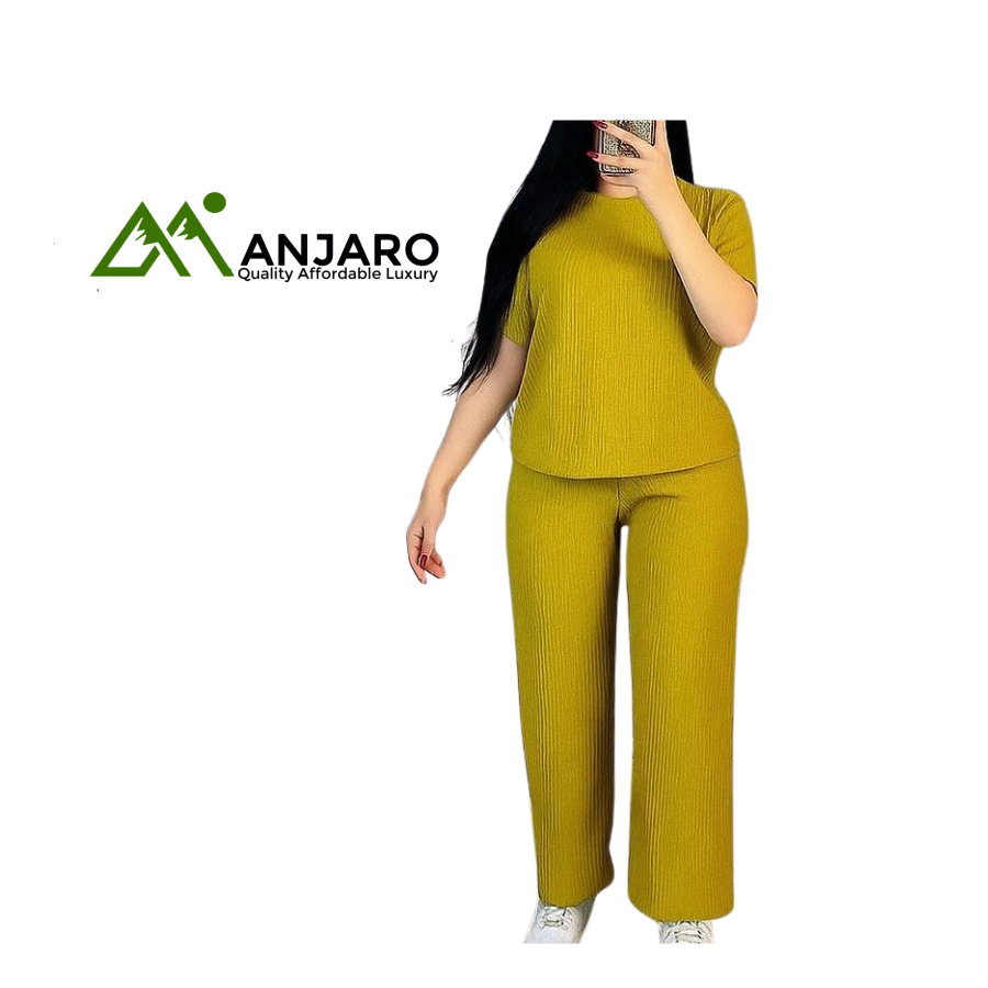 Crafted from soft, breathable fabric with a subtle ribbed texture, it offers ultimate comfort while maintaining a sleek, polished appearance. Perfect for running errands, lounging at home, or casual meetups, this set can be styled with sneakers for a sporty vibe or sandals for a relaxed day look.